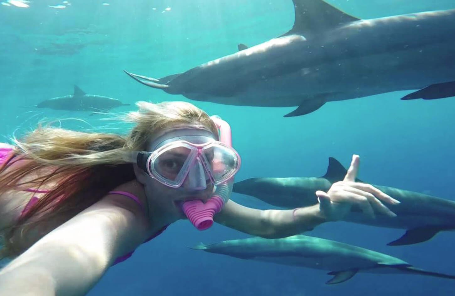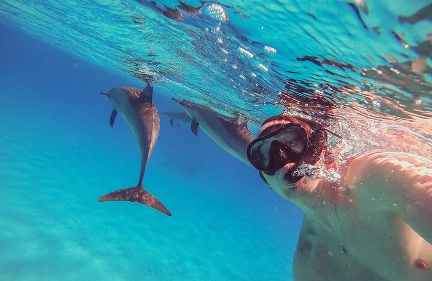Upon arrival, dive into your first snorkeling session, where you’ll have the rare and magical opportunity to swim alongside dolphins in their natural environment. This extraordinary encounter is one of the Red Sea’s most unforgettable highlights.